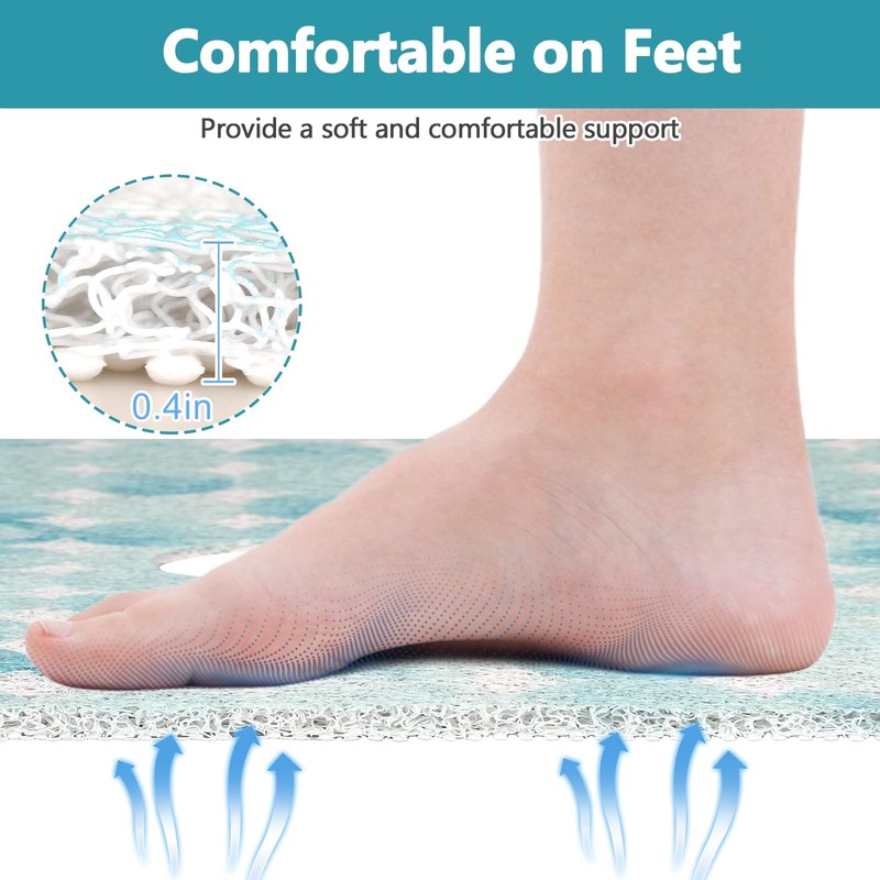 The loofah-like internal structure of shower mats for inside shower, providing a cushioned and comfortable support in the shower and bringing your feet nice massage experience while showering, perfect for stand up shower stall.