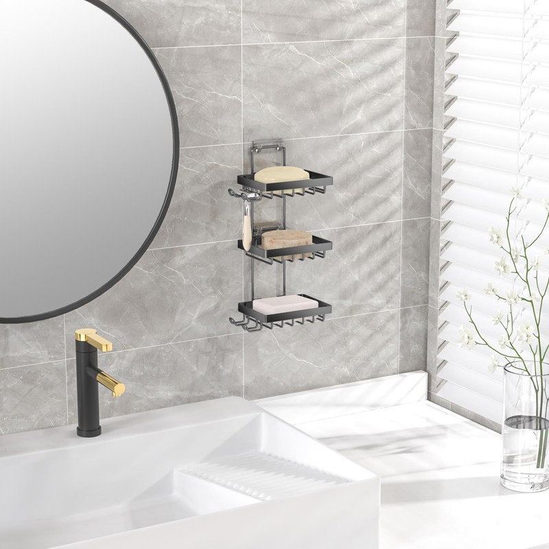 - 【Hook Design】With a hook design on the soap dish, you can hang bath balls, bath brushes, razors, etc. There is no need to purchase additional hooks, which ensures better functionality while ensuring aesthetics.