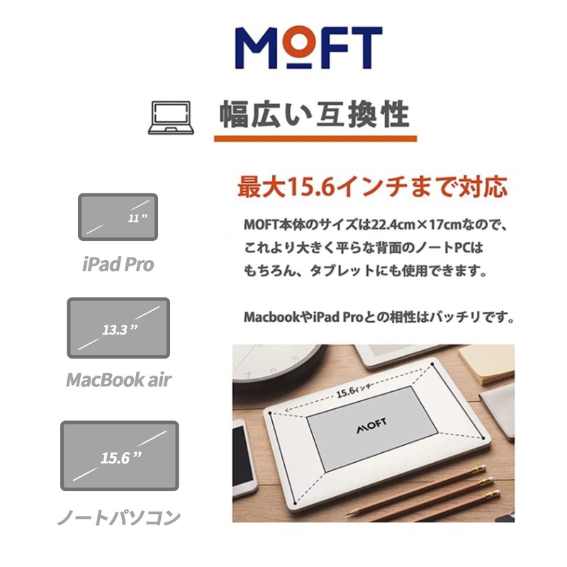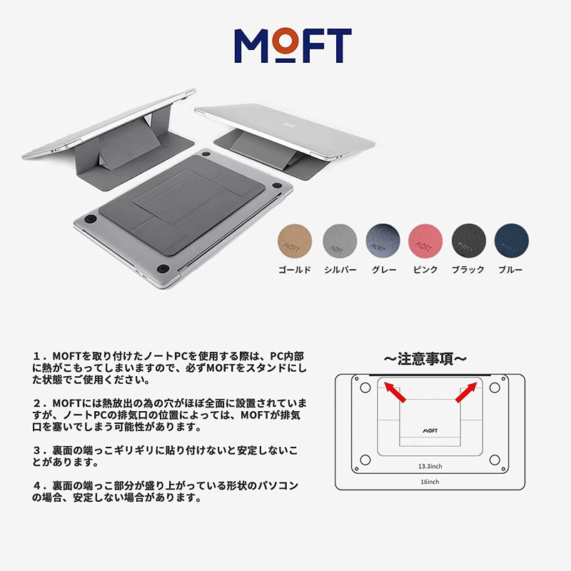 - (Heat Dissipation Prevention, Excellent Performance) We received many feedback on the back of the laptop computer, and the MOFT is a general-purpose model with exhaust vents. It can also be used with laptops that have a rear exit, so it can fit more laptops. MOFT is only 3mm thick. Lightweight at 89g You may forget to carry the MOFT. Compact and lightweight It is a great benefit of a variety of places being quickly used as a mobile workstation