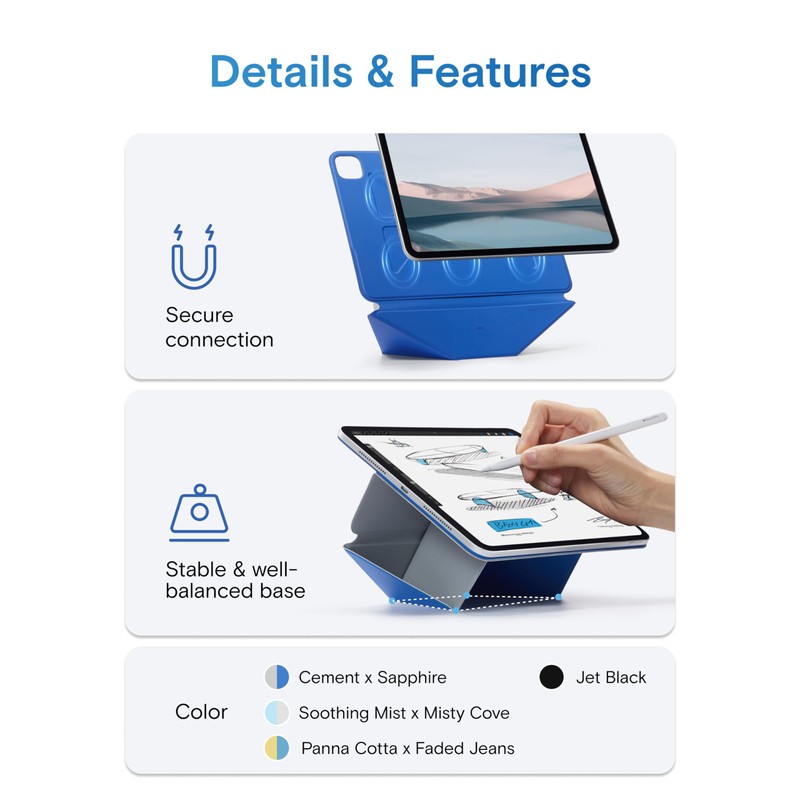 MOFT MOFT Dynamic Folio Case for for iPad Air 11-inch M3 M2 2025 2024/10.9 Air 5th 4th Generation 2022 2020, iPad Pro 11 Inch 4th/3rd/2nd Gen, Magnetic Stand Case with 20+ Viewing Angles, Cement x Sapphire