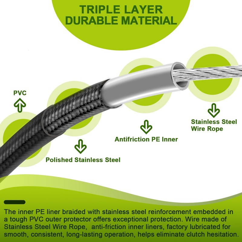 - 【Durable Quality】Inner PE tubing braided with stainless steel reinforcement embedded in a tough PE plastic outer jacket offers exceptional protection.Wire made of Stainless Steel Wire Rope, anti-friction inner liners, factory lubricated for smooth, consistent, long-lasting operation, helps eliminate clutch hesitation.