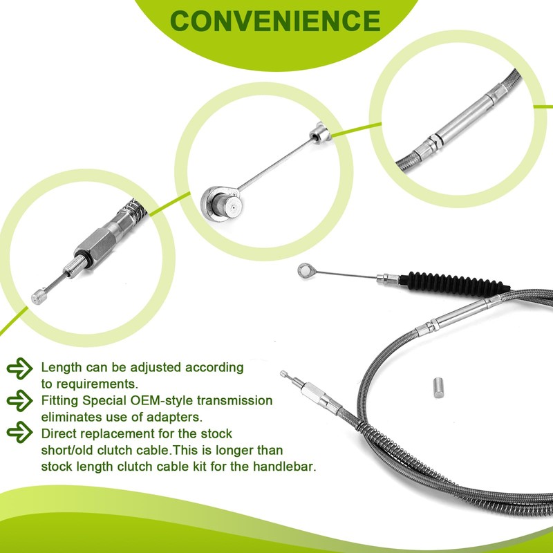- 【Seamless Fit】Our 65 3/4" motorcycle clutch cable compatible with harley requirements for clutch cable. Special the factory style transmission fitting eliminates use of adapters. Please check the detailed fitment list before purchasing.