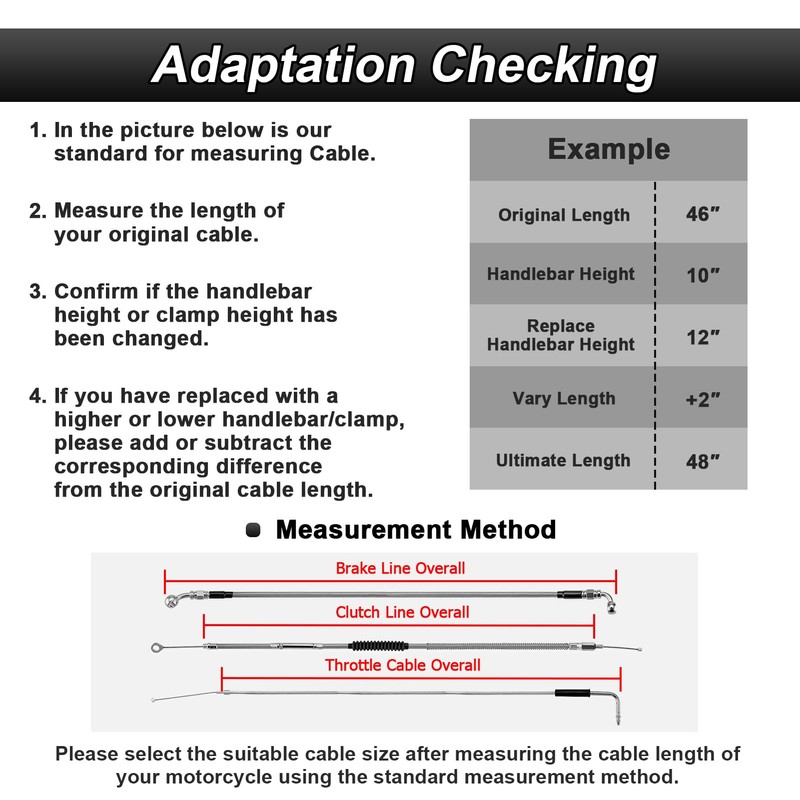 - 【Dimensions】This clutch cable kit length is 65 3/4"(1650mm). Some models might need a longer cable kit than the usual length. That's the cause of how their cables need to wind around or other needs. Please check the detailed fitment list and product size before purchasing.