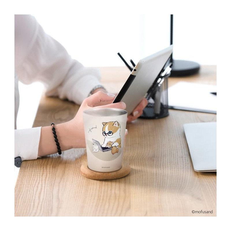 mofusand 53-2036 2-Way Vacuum Double Layer Tumbler, M, Office, Work, Desk, Cup, Hot and Cold Insulation, Holder, Cup, Cute, Cat