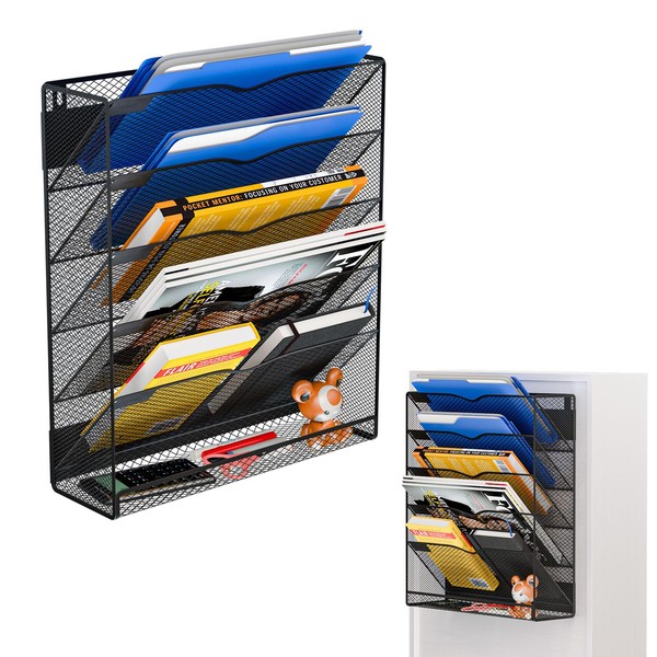 - 【Space-Saving】Featuring 5 generously-sized tiers for files and 1 extra compartments for pens, sticky notes, or other essentials, this magnetic mail holder maximizes your workspace, ensuring everything you need is always at your fingertips. Keep your desk or filing cabinet looking neat.
