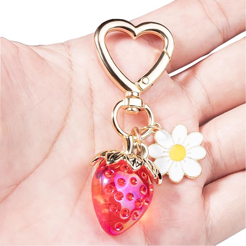 - Unique Design:This high-quality keychain features a beautifully crafted strawberry design, shiny appearance, bright colors, the beautiful strawberry-shaped charm with a heart-shaped keychain and daisy charm.