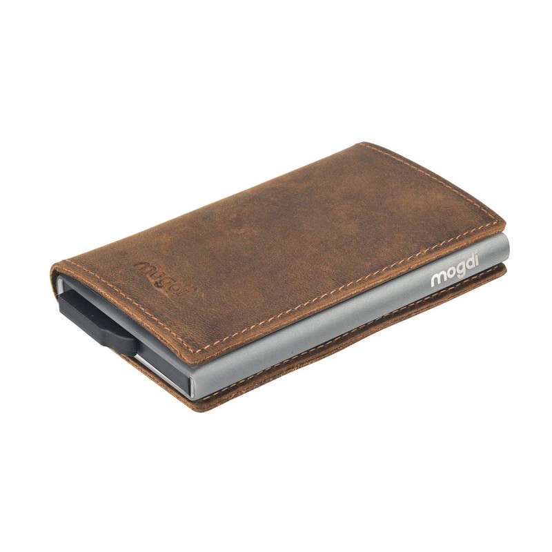 Mogdi Nano Mini Duo Premium Men's Wallet RFID Protection Card Case Business Wallet Finest A++ Genuine Leather Grey