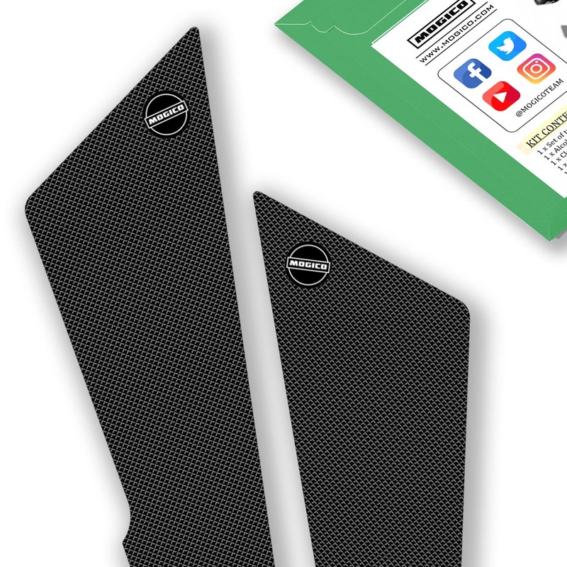 The Mogico Non-Slip Fuel Tank Pad Traction Mat Grabber is the best choice for your motorcycle riding. It is made of high quality material, which not only has a nice look, but also protects your gas tank from scratches/marks and provides a secure grip on the tank.