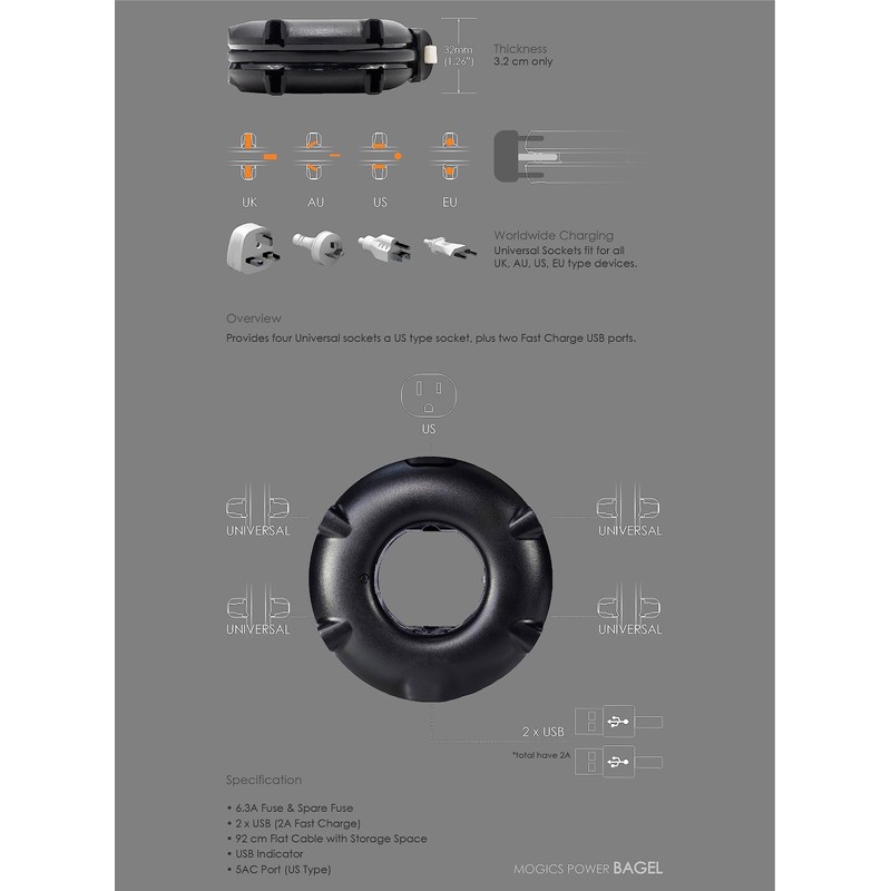 MOGICS Bagel-(White) Universal Power Strip | Working from Home Essential