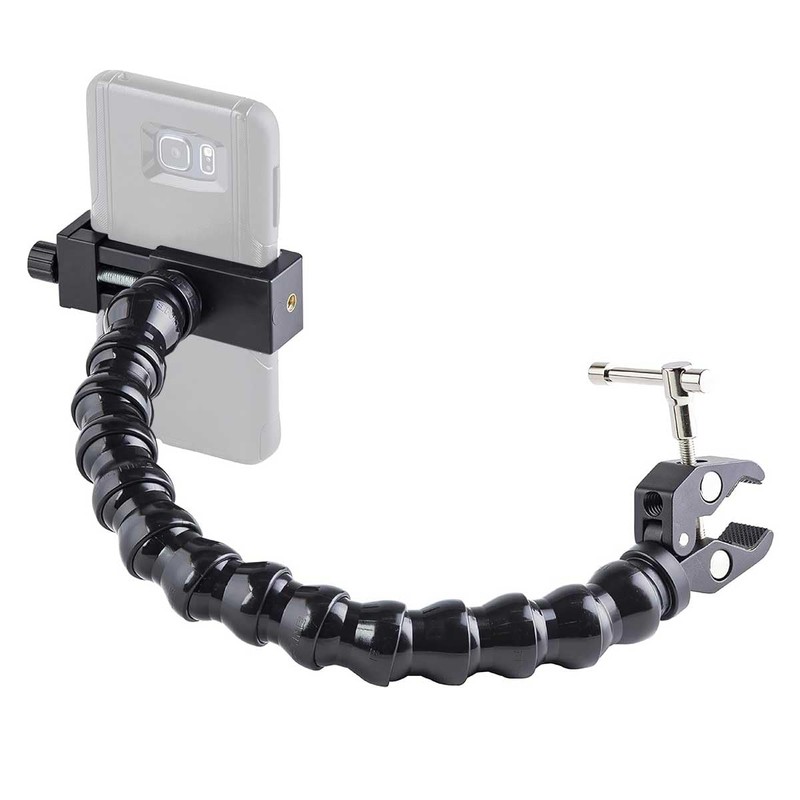 • SIMPLE, EASY SOLUTION - the compact mini clamp and phone holder kit is a great simple solution to hold your phone, music device, or other small device and position it where you need it.
