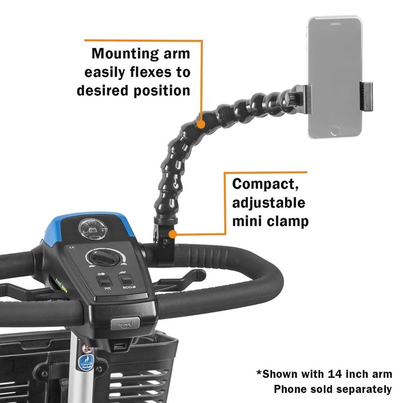 MOGO ModularHose Assistive Technology Phone Holder with Mini Clamp, 14 Inch Arm