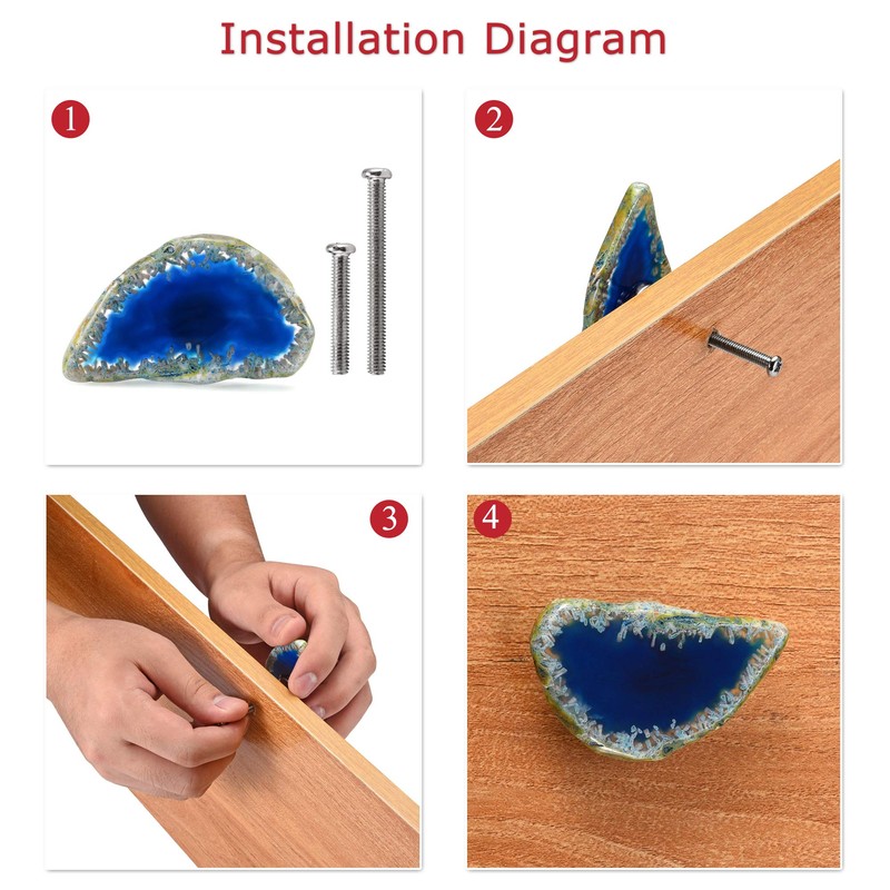 - ✦Size: agate 50-70 mm, screw 25 mm/40 mm. Box contents: 4 x agate furniture knobs + 4 x 25 mm screw + 4 x 40 mm screw.