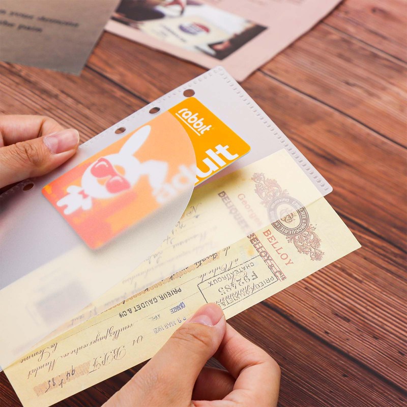 - Frosted A6 sheet protector has 2-pocket design, combines side and top loading, easy to access cash or bills, 6 holes pre-punched fits 6-ring A6 planners or budget binders;