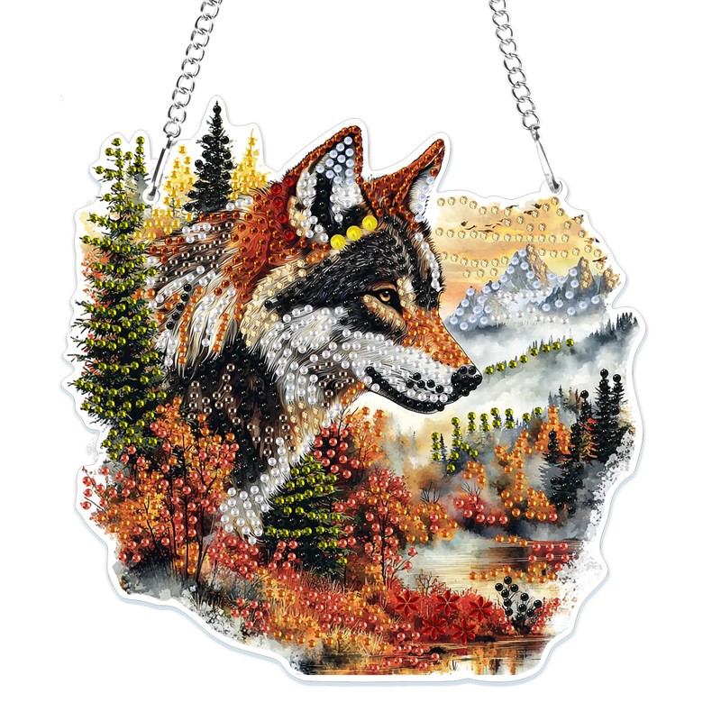 MOGTAA Wolf Diamond Art Hanging Kits for Adults Beginners, 5D Special Shape Diamond Art Pendent Kits, Crystal Rhinestones Animal Diamond Painting Gem Art for Home Decor