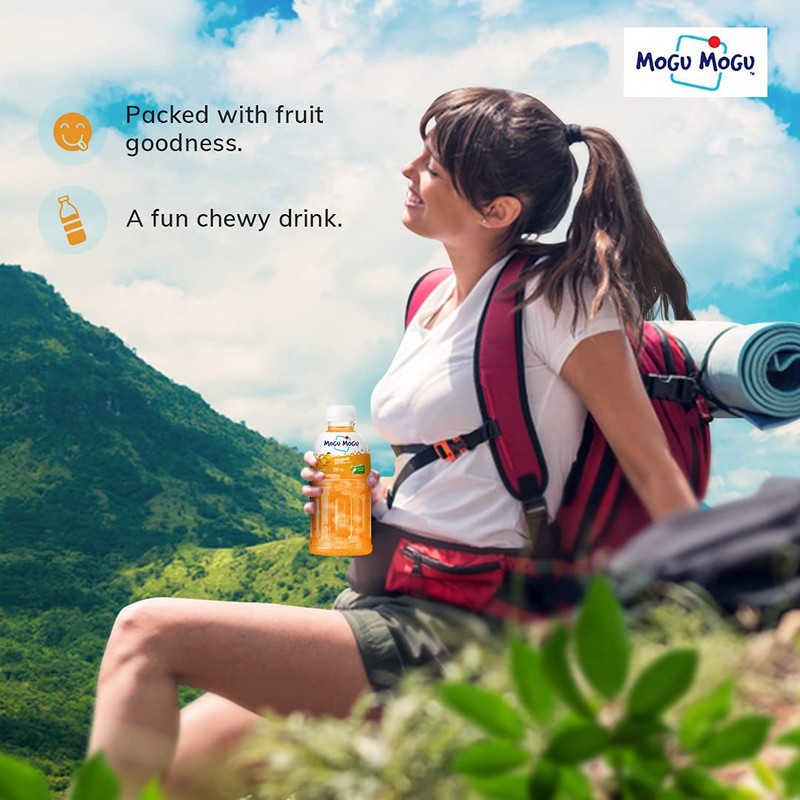 Mogu Mogu Orange and Lychee Juice 25% with NATA De Coco | Energy Booster Drink | Full of Fruit Fibres | No Added Preservatives and Colours - (Pack of 6, 300ml each)