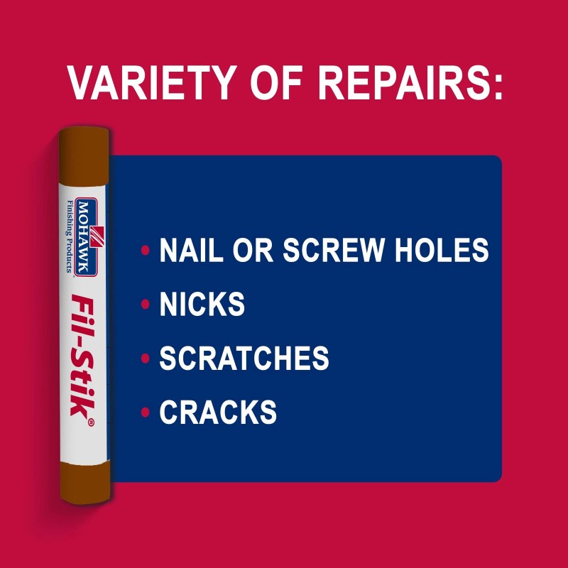 - Refresh Your Furniture! Mohawk Fil-Stik wood putty filler wax stick helps to repair scratches, gouges, and other imperfections in wood furniture, cabinets, trim, and more