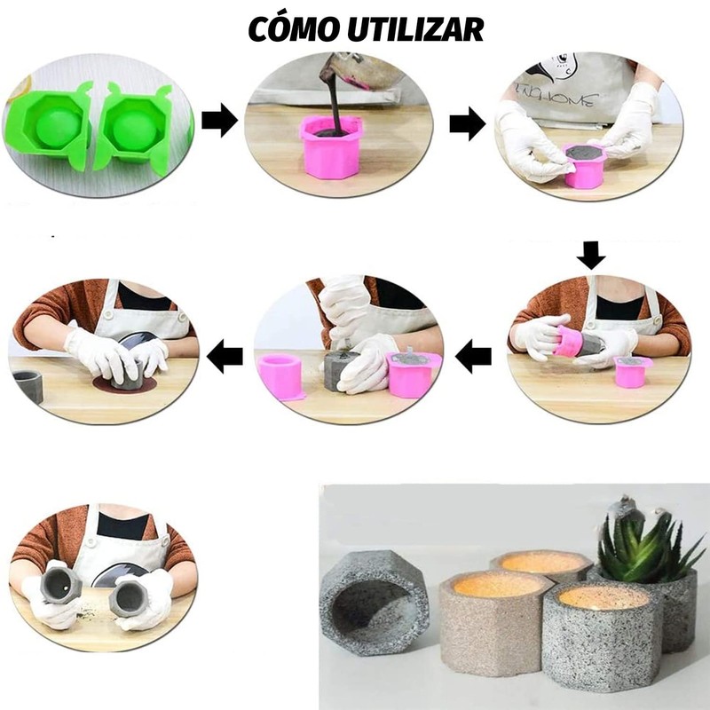 - Fácil de liberar y limpiar: el molde de silicona de concreto es muy fácil de quitar. Después de que se seque completamente, simplemente gira el molde hacia afuera y se desmoldará fácilmente.
