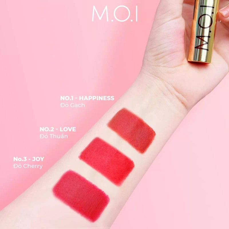 Son kem M.O.I phiên bản mùa lễ hội với thiết kế thỏi son mạ vàng phủ vải kim tuyến cao cấp kiêu sa toát lên nét đặc trưng của mùa lễ hội cuối năm. Không chỉ bổ sung Collagen ngừa lão hóa, dưỡng ẩm và bảo vệ môi khỏi tình trạng khô, bong tróc mà còn tăng điểm nhấn cho lớp trang điểm bởi 3 tông son đỏ quyến rũ và must-have trong các bữa tiệc