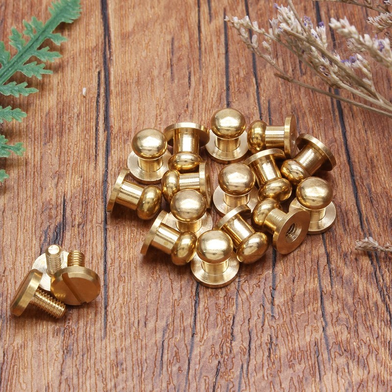 Moicstiy 15Set 6mm Round Head Button Studs Solid Brass Button Stud Screw Leather Button Rivets for Bag, Belt, Craft, DIY Decoration