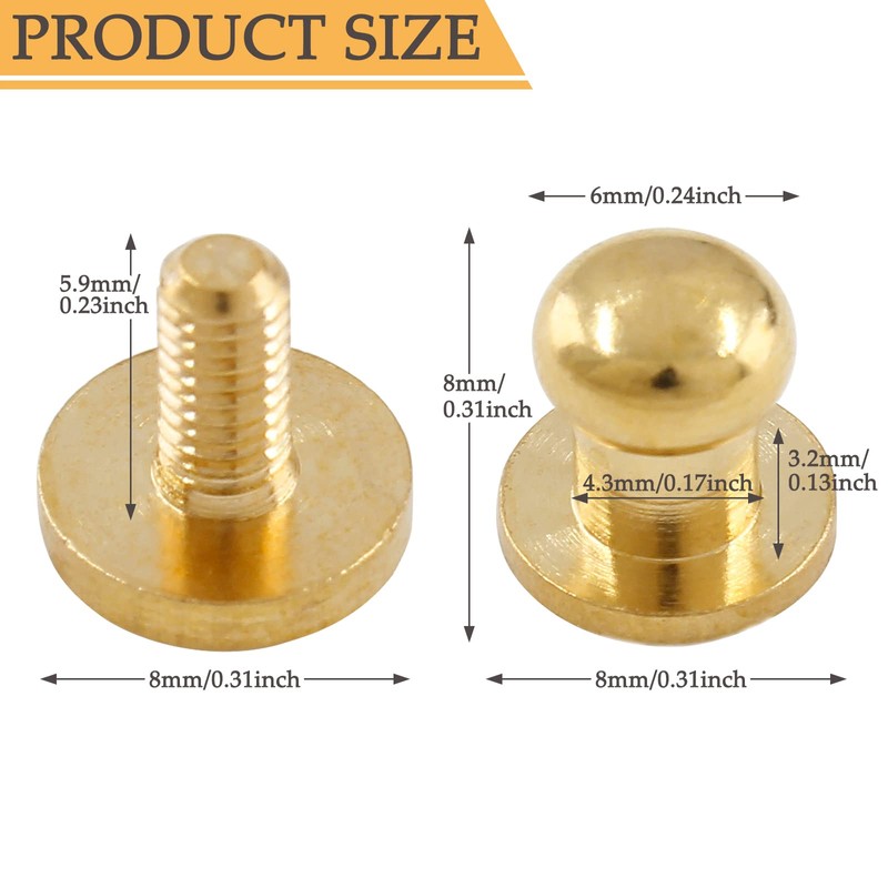 - 💎What You Get: 15Set diameter 6mm brass round head button studs. Base diameter is 8mm/ 0.31inch, height is 8mm/ 0.31inch. Suitable for DIY decoration in your daily life!