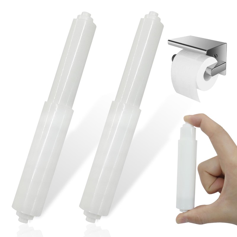 Moicstiy 2Pack Toilet Paper Holder Spring Rod Replacement, Plastic Spring Loaded Toilet Paper Holder, White