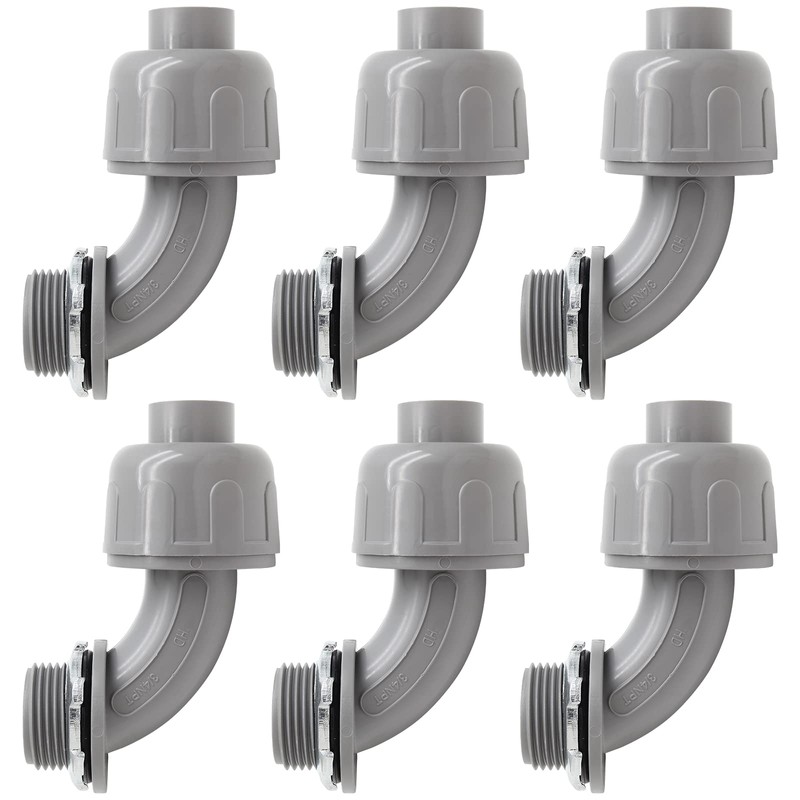 Moicstiy 3/4 Inch NPT Liquid Tight Connector 90 Degree Nonmetallic Electrical PVC Conduit Connector Fitting(6Pcs)
