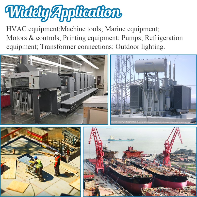 • Wide Applications: Conduit connector fittings can be used indoors or outdoors for mechanical equipment, marine equipment, machine tools, pumps, printing equipment, refrigeration equipment, outdoor lighting, transformer connections, etc.