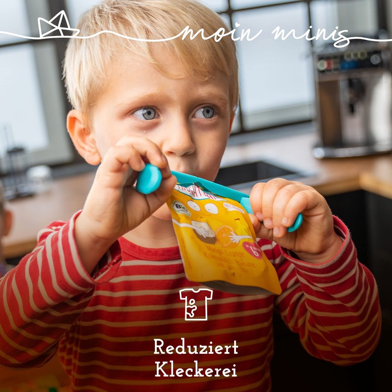• TOLLES DESIGN: die Quetschie-Halter kommen in drei unterschiedlichen, leuchtenden Farben mit zuckersüßer, detailverliebter moin minis Prägung und sind extra für Kinderhände entwickelt.