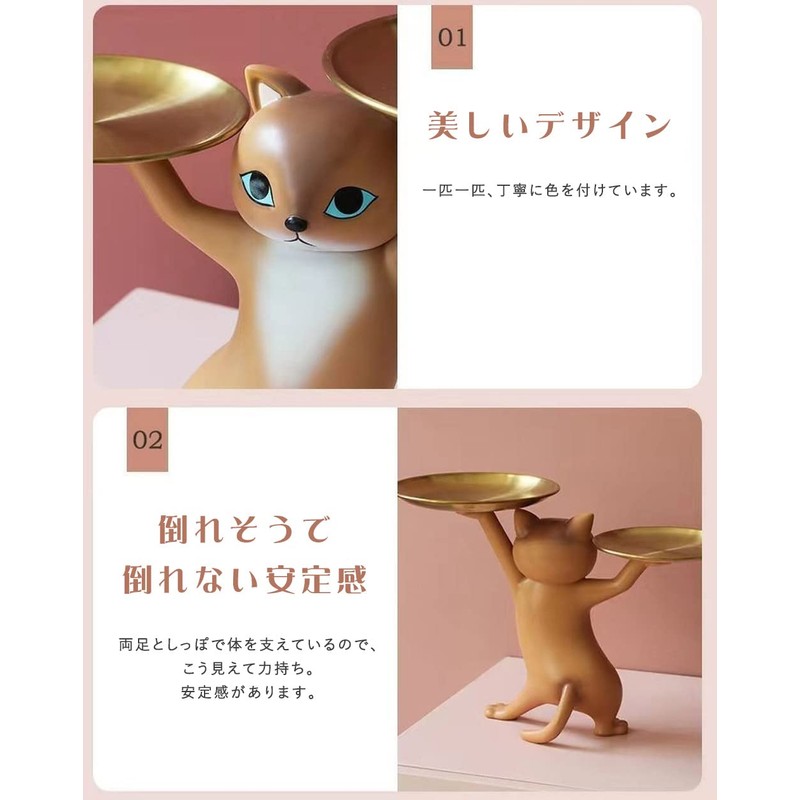 moin moin 2304fig28 Figure, Figurine, Ornament, Cat Accessories, Holds Small Items, Width 14.2 x Height 9.8 x Depth 6.7 inches (36 x 25 x 17 cm) / Interior Accessories, Small Plates, Small Accessories, Cute, Cats, White, Gold, Gold, Animal, Cute (White C