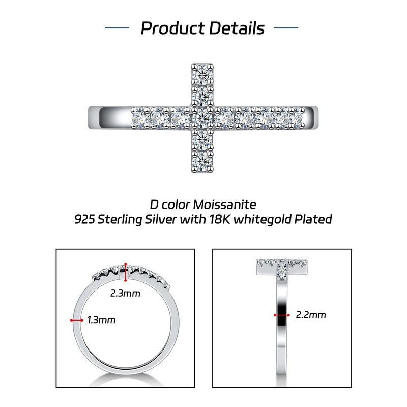 - Moissanite Cross Rings:Embrace your faith and style with our stunning Cross Silver Ring. Crafted from high-quality sterling silver and D color VVS1 moissanite, this ring features a beautifully designed cross that symbolizes love, hope, and strength. Its sleek and modern design makes it perfect for everyday wear or special occasions.