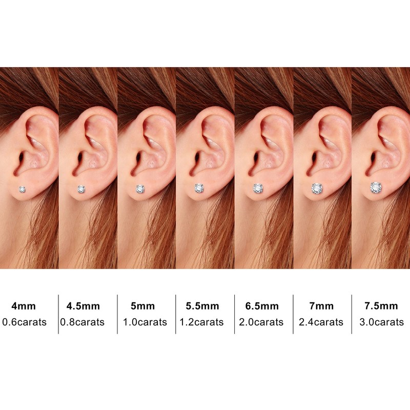- Premium moissanite earrings- Created Brilliant Round Cut Moissanite/ 925 Sterling Silver Post and Clasp/18K White Gold Plated. Hypoallergenic, lead-free and free Nickel. Will not make your ears green, red or itchy.