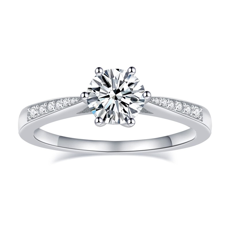 Moissanite Wedding Engagement Ring 1 Carat Classic 6 Prong Lab Created Diamond Anniversary Ring 925 Sterling Silver Solitaire Diamond Promise Ring for Women size 5-14