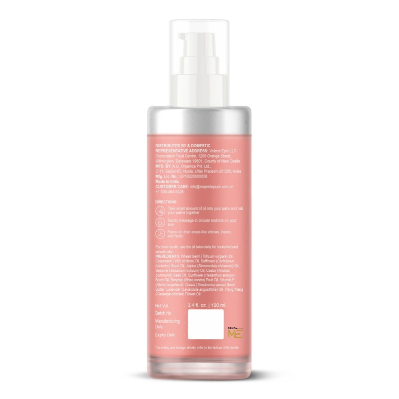 - Skin Elasticity & Texture: Rosehip Oil in this body oil is rich in essential fatty acids, helping to reduce the appearance of stretch marks and fine lines. Cocoa Butter deeply nourishes and boosts elasticity while smoothing uneven skin tone.