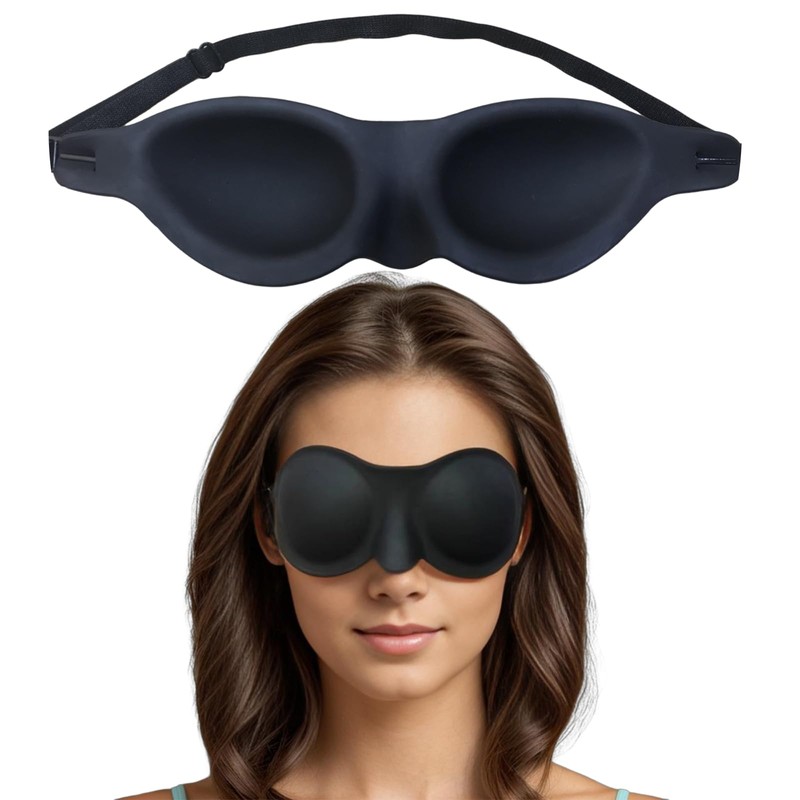 - đăCOMFORTABLE 3D DESIGN EYE GOGGLESă Innovative 3D silicone eye shield for sleeping conforms to facial contours, providing vast room in the eye cups for free blinking. Deep design prevents makeup and eyelash smudging, offering zero pressure on the eyes for restful sleep day and night.