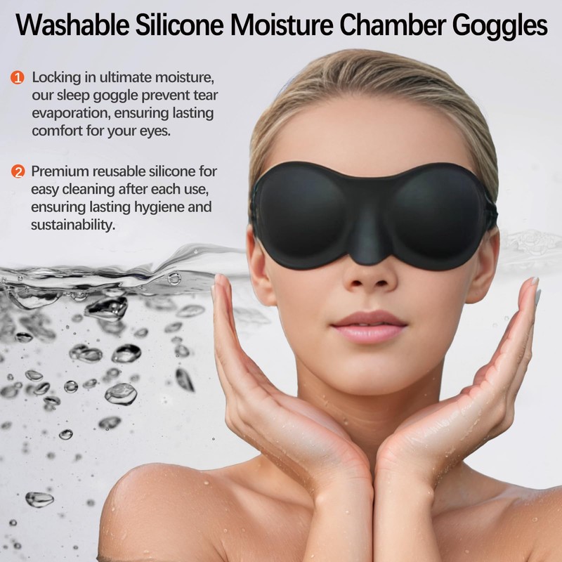 - đăMAXIMIZED HYDRATION SLEEP GOGGLESăExperience ultimate hydration with 3D silicone moisture chamber glasses for dry eyes. They prevent your eyes from being exposed to dry environments, which can accelerate tear evaporation, leading to dryness. At the same time, they create a small enclosed space to preserve moisture for maximum comfort.