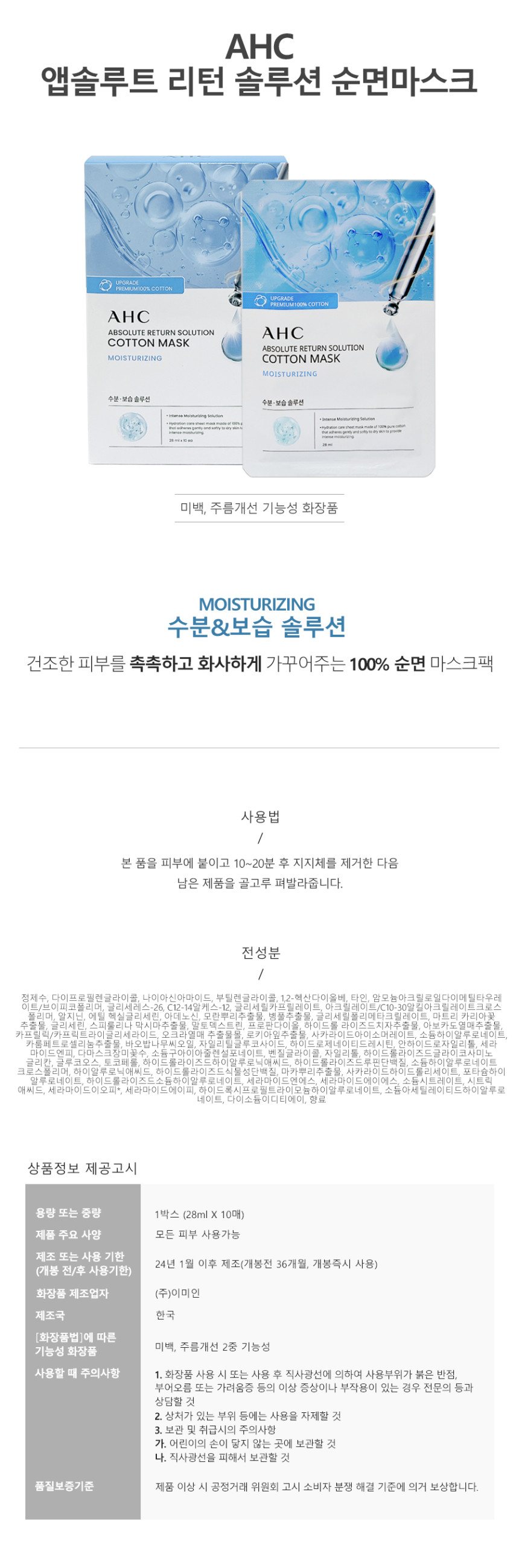 수분 마스크팩 앱솔루트 리턴 솔루션 순면 1박스