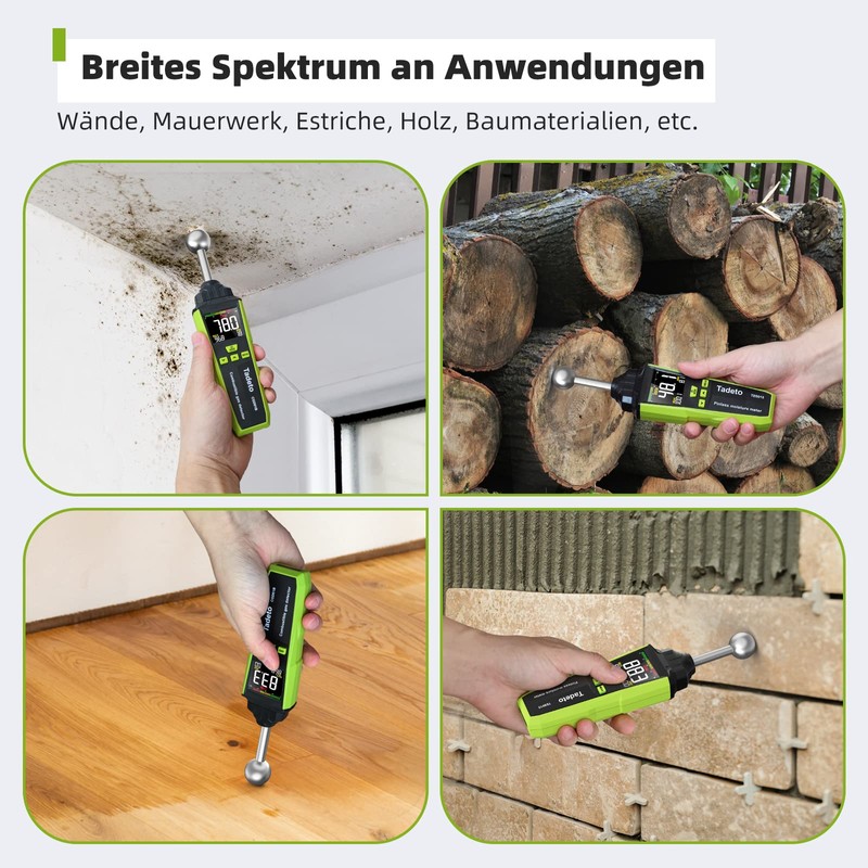 - Accurate and non-destructive measurement: the moisture meter uses a high-precision alloy probe and a powerful processing chip to provide accurate and reliable results. By using a non-invasive measurement method that does not damage the material surface, the extended handle and probe easily cover a variety of narrow and difficult areas and measure at a depth of up to 40 mm with a measuring range of 0-100.