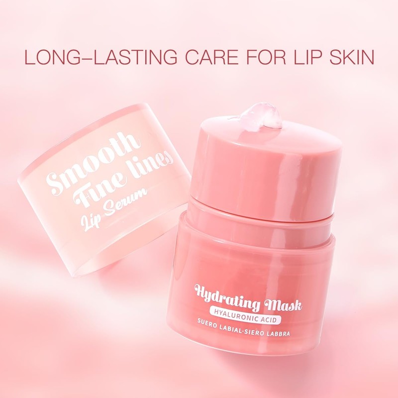 Moisturizing Lip Balms to Smooth Fine Lines Lip Serum and Hydrating Mask with Hyaluronic Acid, Pack of 2, Pink