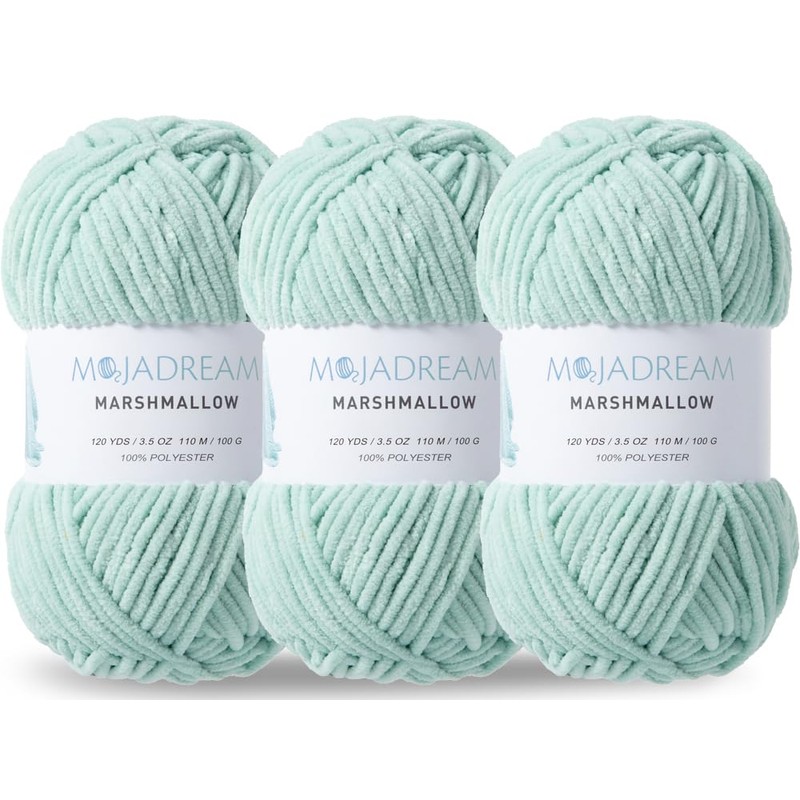 MOJADREAM 3PCS 3.5oz Chenille Yarn for Blankets Amigurumi: Soft Velvet Baby Yarn Blanket Knitting and Crocheting Bulky 5# Yarn 3 Skeins of 100g (Mint Green)