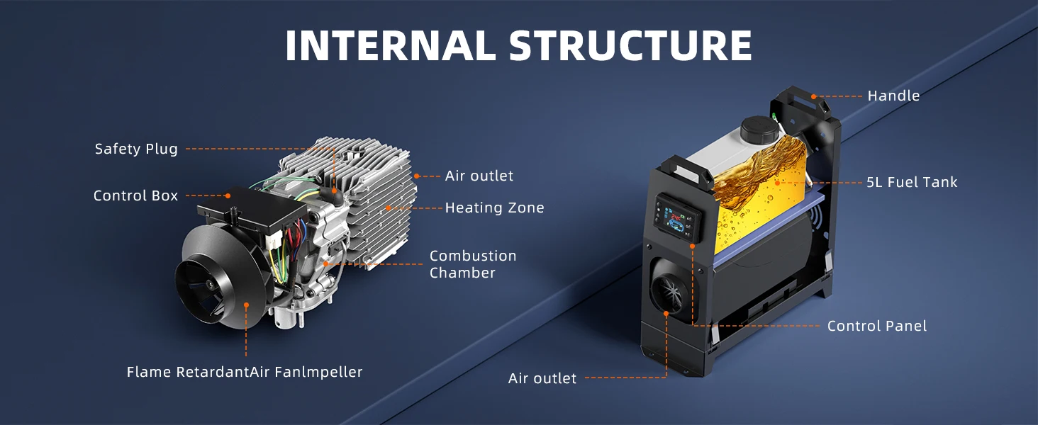 Designed for minimal fuel consumption (as low as 0.23L/hour), the heater operates all night on just 1 gallon of diesel. It significantly reduces fuel costs compared to traditional heaters, offering long-term savings.Smart Control & Portability