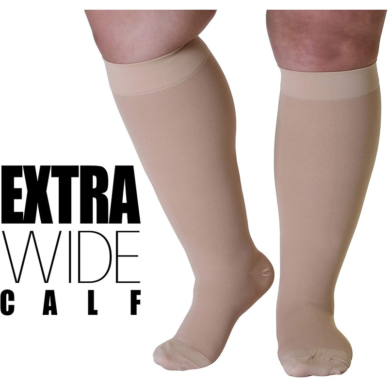 Mojo Compression Socks 6XL Plus Size Compression Stockings Extra Wide Calf Unisex - Closed Toe 20-30mmHg - XXXXXX-L Beige AB201BE9 by Mojo Compression Socks Store
