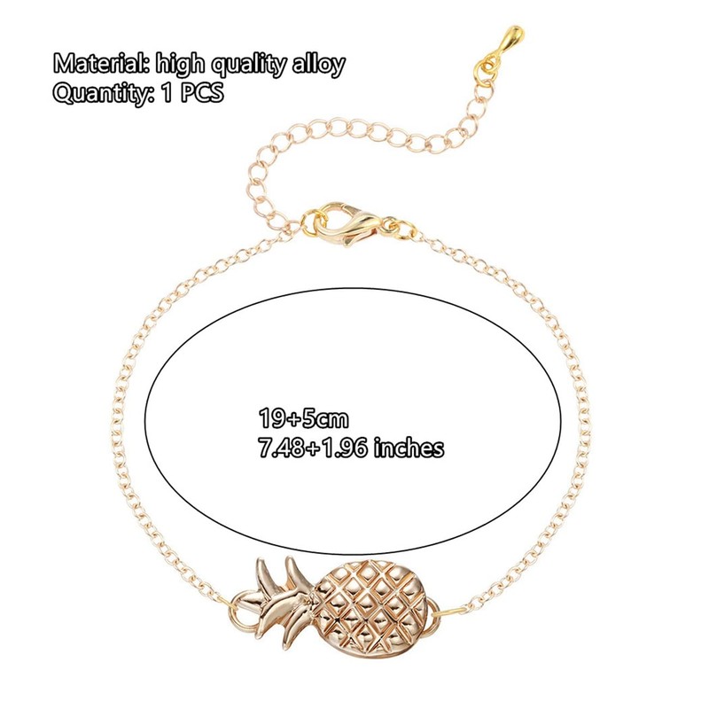 - 3. Fashion jewelry:Once you put on the delicate pineapple anklet with lobster clasp, you can adjust the length. So our Gold Pineapple Chain Bracelet can be worn with many different outfits!