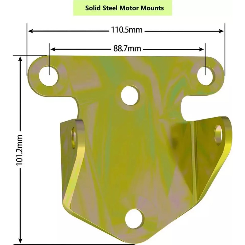 • SPECIFICATIONS - This combo kit includes both engine mounts and frame mounts.The solid steel Motor Mounts have the following specs: Motor Mounts eliminate engine rotation, torque loss, & prevents linkage binding - measures 2 1/2" inside the ears and 1-11/16" from back of mount to center of the bolt hole