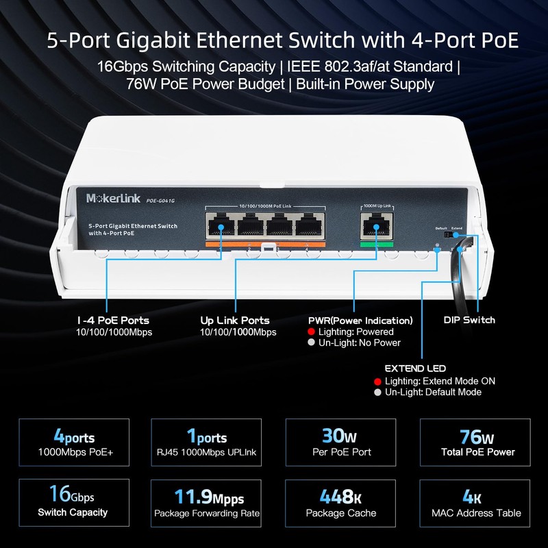 - 5 Gigabit Ports: Includes 4 Gigabit POE ports, 1 Gigabit Uplink Ports(not PoE), all ports support gigabit rate(1000Mbps), can provide more bandwidth and connect 4 poe devices.