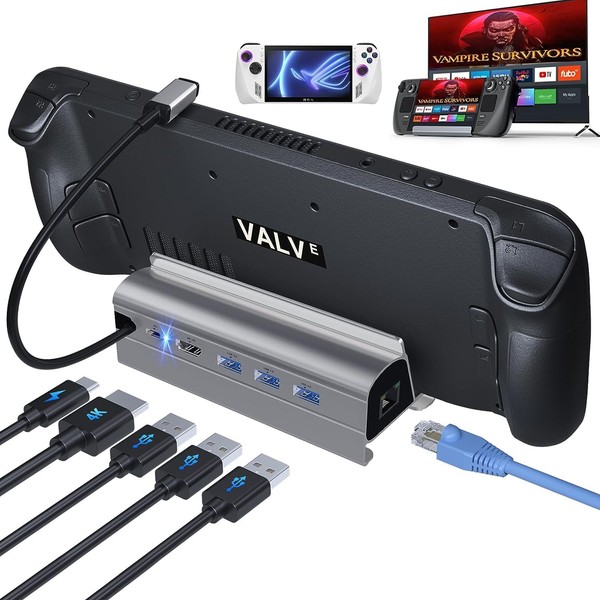 Mokeum Docking Station Compatible with Steam Deck, 6 in 1 USB C Hub Deck Dock HDMI 2.0 4K@60Hz, 1000M Gigabit Ethernet, 3 USB-A 3.0 and Full Speed Charging USB-C Port for Valve