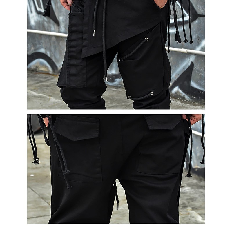 MOKEWEN Men's Gothic Punk Techwear Lace Up Jogger Urban Cargo Pants with Pockets Black S-5XL