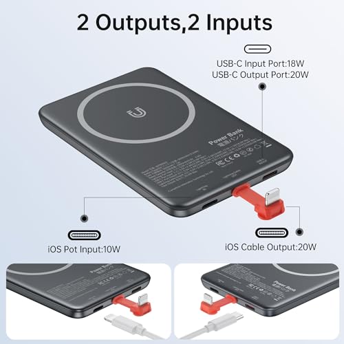 Slim Magnetic Power Bank 5000mah, PD 20W Fast Charging Travel Battery Pack,