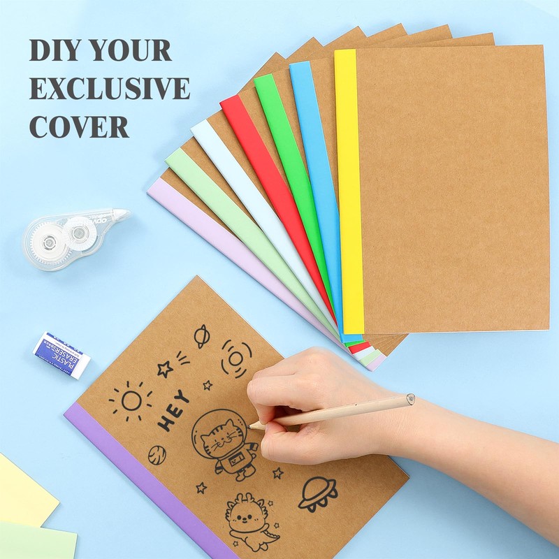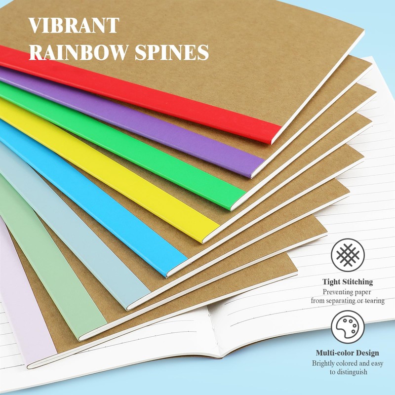 - Colorful College Linded Paper Notebook - The notebooks bulk has different macaron colors on the spine, convenient to distinguish the notebook for different purposes or subject according to the colors. The blank kraft cover can be used as a free creation area, unleashing your imagination to personalize your notebook by writing or drawing.