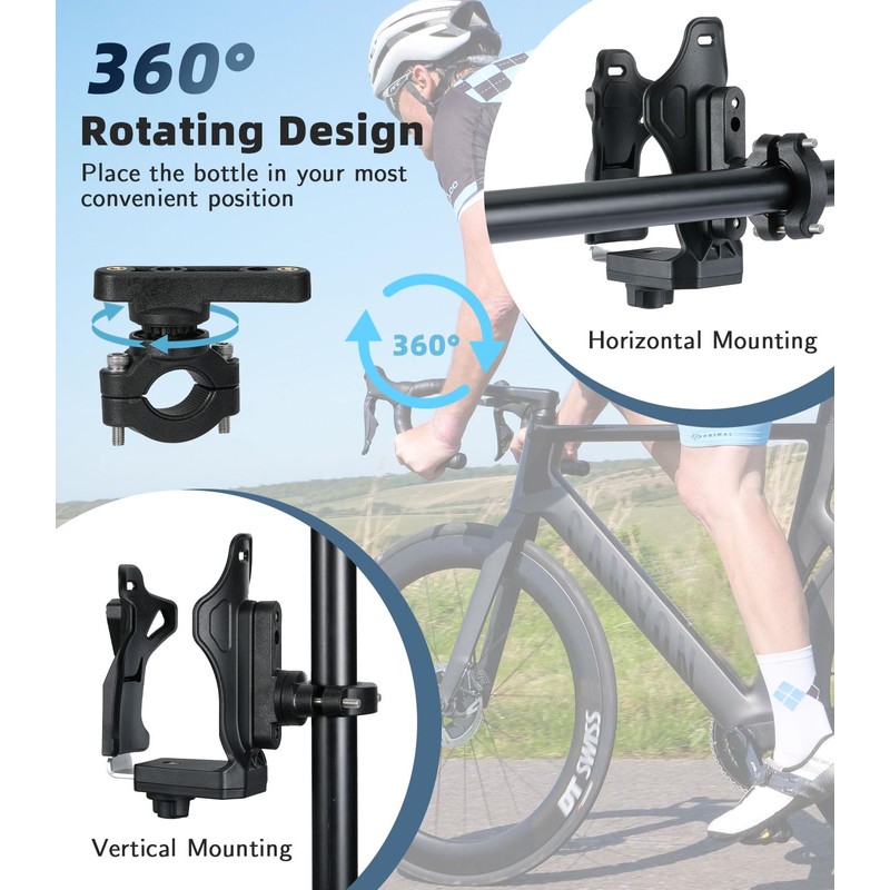 -360° Rotating: Easy to install on both horizontal and vertical handlebar, get an comfortable angle to fetch your water bottle.