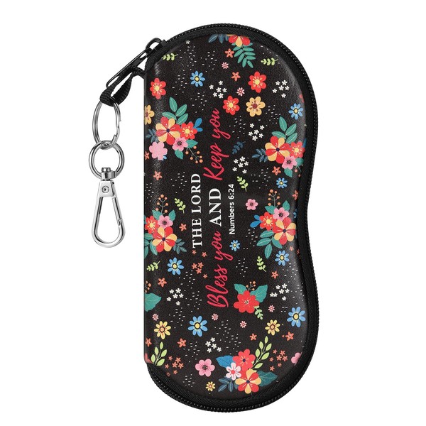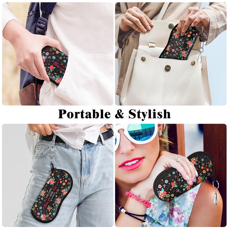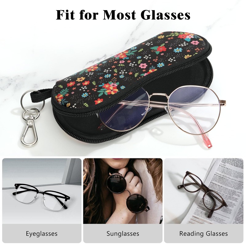 MoKo Eyeglass Soft Case, Zippered Neoprene Sunglasses Pouch with Clip for Men Women, Black & Flower